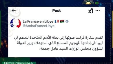 دانت السفارة الفرنسية في ليبيا، محاولة اغتيـ ــال وزير الدولة لشؤون مجلس الوزراء بحكومة الوحدة، عادل جمعة. وقالت السفارة في…
