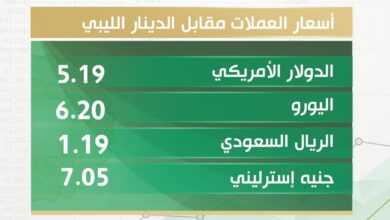 أسعار العملات الأجنبية مقابل الدينار الليبي اليوم الثلاثاء