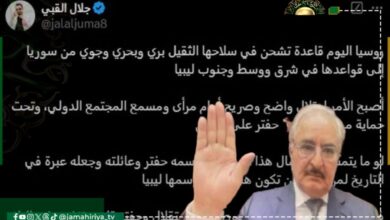 أكد عضو المكتب الإعلامي لعملية بركان الغضب، جلال القبي، أن نقل الأسلحة الروسية من سوريا إلى ليبيا، أصبح أمرا واضحا…