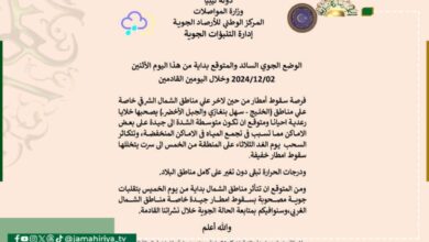 توقع المركز الوطني للأرصاد، أن هناك فرصة لسقوط أمطار من حين لاخر على مناطق الشمال الشرقي خاصة علي مناطق (الخليج…