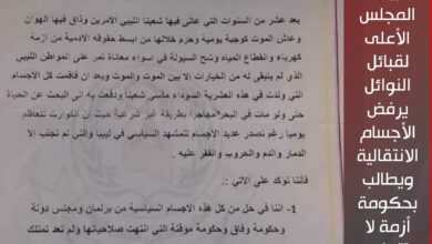بيان المجلس الأعلى لقبائل النوائل يرفض الأجسام الانتقالية ويطالب بحكومة أزمة لا تتجاوز مدتها 6 أشهر للوصول للإنتخابات
