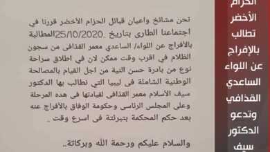 طالب المجلس الاجتماعي لقبائل الحزام الأخضر بالإفراج عن اللواء الساعدي معمر القذافي من سجون الظلام في أقرب وقت ممكن.…