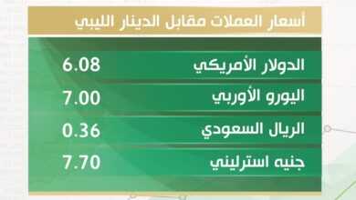 أسعار العملات الأجنبية مقابل الدينار الليبي اليوم الاثنين 05 / 10 / 2020 م
