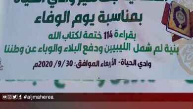 أحيت جماهير شعبية وادي الحياة جنوب البلاد ذكرى يوم الوفاء الثامن والعشرين بقراءة القرآن الكريم. وختم أهالي وادي الحياة 176…