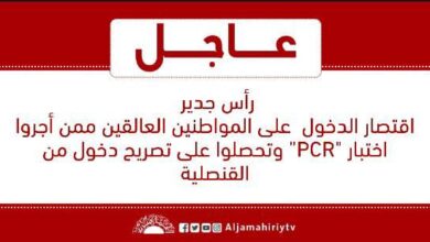 رأس جدير اقتصار الدخول على المواطنين العالقين ممن أجروا اختبار “PCR” وتحصلوا على تصريح دخول من القنصلية