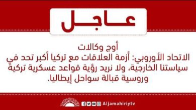 عاجل // أوج وكالات /الاتحاد الأوروبي: أزمة العلاقات مع تركيا أكبر تحد في سياستنا الخارجية، ولا نريد رؤية قواعد عسكرية تركية وروسية قبالة سواحل إيطاليا