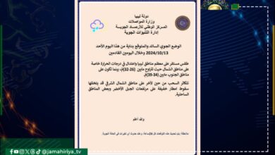 الأرصاد الجوية: طقس مستقر على معظم مناطق ليبيا واعتدال في درجات الحرارة توقع مركز الأرصاد الجوية، وجود طقس مستقر…