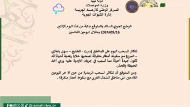توقعات بأمطار متفرقة تصحبها خلايا رعدية في مناطق الشمال الغربي تتكاثر السحب اليوم على المناطق (سرت – الخليج – سهل…