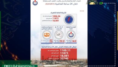 نشرت مؤسسة النفط كميات الغاز الطبيعي والنفط والديزل المحالة إلى جهات الاستهلاك خلال الـ 24 ساعة الماضية. وأوضحت مؤسسة النفط…