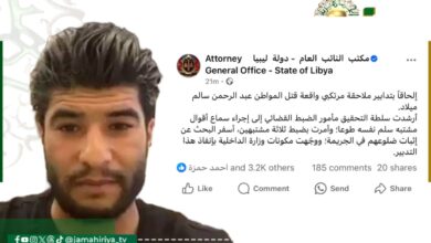 أمر النائب العام الصديق الكبير، بضبط وإحضار 3 مشتبهين ثبت ضلوعهم في قتل مهرب البشر والوقود المُعاقب دوليًا، عبد الرحمن…