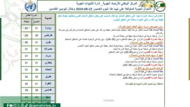 توقع المركز الوطني للأرصاد الجوية اعتدال درجات الحرارة نهارا على مناطق الشمال، مع تكاثر السحب على بعض مناطق الشمال الغربي…