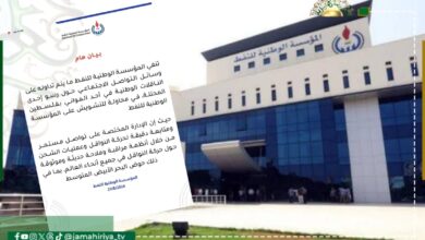 نفت مؤسسة الوطنية للنفط، ماتردد عن رسو إحدى الناقلات الليبية في أحد الموانئ بالكيان الصهيوني مؤكدة أنها محاولة للتشويش على…
