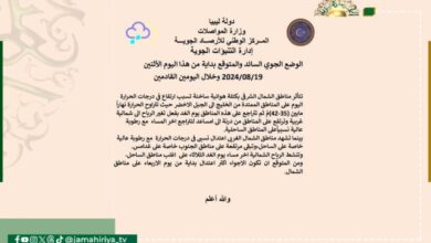 توقع المركز الوطني للأرصاد الجوية، الأحوال الجوية على ليبيا اليوم الأثنين وخلال اليومين القادمين، حيث تتأثر مناطق الشمال الشرقي…