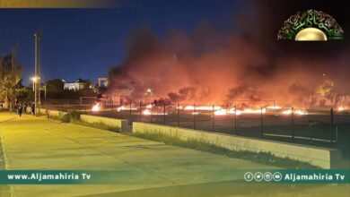 جماهير أهلي بنغازي تشعل النيران في أرضية ملعبهم الرئيسي