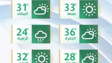 مازالت نسبة الرطوبة مرتفعة على المناطق الساحلية ودرجات الحرارة القصوى المتوقعة على هذه المناطق تتراوح ما بين (29 – 32)…