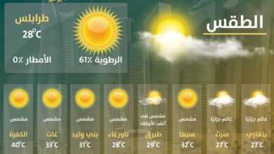 لا تغير في حالة الطقس على اغلب مناطق ليبيا حيث الاجواء معتدلة نسبيا على مناطق الشمال مع رطوبة عالية على…