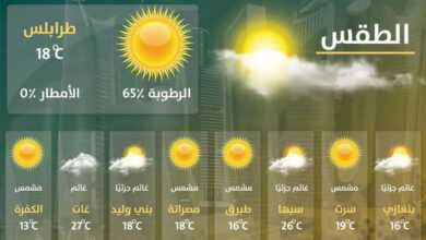 تتأثر مناطق غرب ليبيا بتقلبات جوية نتيجة لإمتداد لمنخفض صحراوى جنوب شرق الجزائر مصحوب برياح نشطة تكون مثيرة للأتربة والغبار…