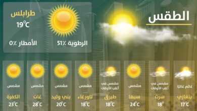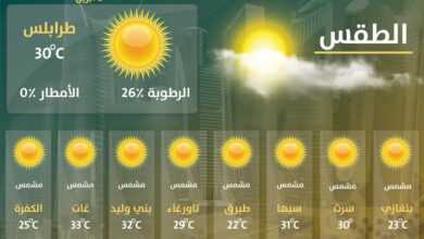 يبقى الطقس مستقر هذا اليوم على اغلب مناطق ليبيا نتيجة لامتداد مرتفع جوي ، بينما بداية من يوم الغد سوف…