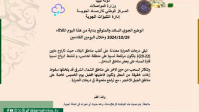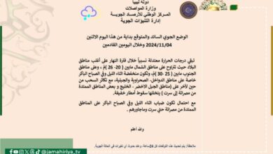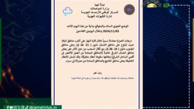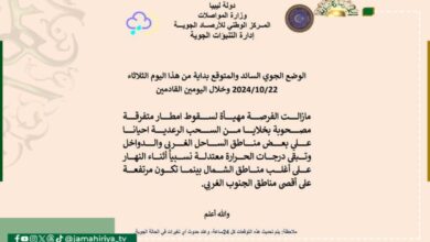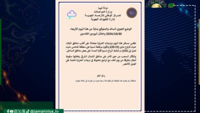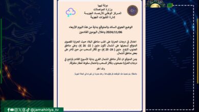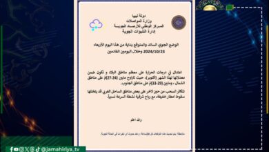 الأرصاد الجوية: طقس معتدل على معظم مناطق ليبيا مع تكاثر للسحب توقع مركز الأرصاد الجوية، وجود طقس معتدل على معظم…