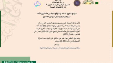 الأرصاد الجوية: درجات الحرارة معتدلة نسبياً على أغلب مناطق البلاد توقع مركز الأرصاد الجوية، أن تكون درجات الحرارة معتدلة…