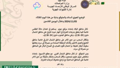الأرصاد: الفرصة ما زالت مهيأة لسقوط أمطار متفرقة تخللها سحب رعدية قال مركز الأرصاد الجوية، إنه مازالت الفرصة مهيأة…