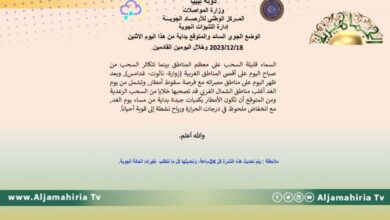 انقشاع للسحب الممطرة اليوم علي مناطق شمال غرب ليبيا قال مركز الأرصاد الجوية، ان مناطق شمال غرب ليبيا شهدت…