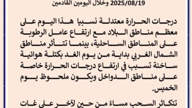 توقع المركز الوطني للأرصاد الجوية اليوم الاثنين تذبذب في درجات الحرارة (مابين ارتفاع وتراجع) خلال هذه الأيام على مناطق…