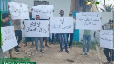 نظم عدد من الشباب العاملين في ميناء الخمس البحري وقفة احتجاجية رفضًا لمنعهم من فتح الحاويات وإخراج السيارات من…