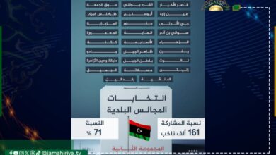 البعثة الأممية تهنئ الليبيين بنجاح انتخابات 26 بلدية ونسبة مشاركة 71% هنأت بعثة الأمم المتحدة للدعم في ليبيا مواطني…