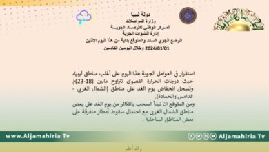 تكاثر السحب اليوم على بعض مناطق الساحل ووسط ليبيا توقع مركز الأرصاد الجوية، تكاثر السحب اليوم على بعض مناطق…