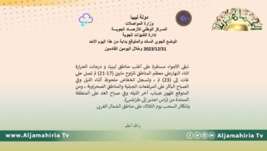 توقع مركز الأرصاد الجوية أن تبقى الأجواء مستقرة على أغلب مناطق ليبيا، و درجات الحرارة اثناء النهار على معظم المناطق…