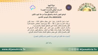 الأرصاد الجوية: أجواء تميل للاستقرار نهارا على معظم مناطق البلاد توقع مركز الأرصاد الجوية، أجواء تميل للاستقرار نهارا على…