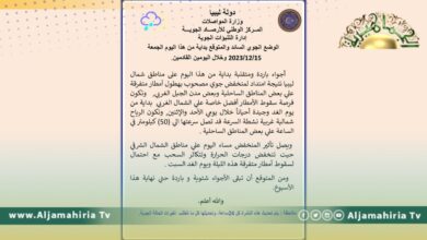 توقع مركز الأرصاد الجوية أن تسود أجواء باردة ومتقلبة بداية من هذا اليوم على مناطق شمال ليبيا. وأوضح المركز أن…