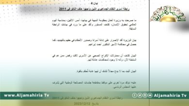 رابطة أسرى النظام الجماهيري: بيان وزيرة العدل كشف أن محاولات الإفراج الصحي لاقت رفض ممن في السلطة الآن أصدرت…