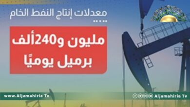 مؤسسة النفط: ارتفاع إنتاج الخام لمليون و240 ألف برميل يوميًا أعلنت مؤسسة النفط، اليوم الإثنين، أن إنتاج النفط الخام،…
