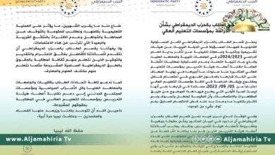 القسم الطلابي بالحزب الديمقراطي يستنكر استمرار إيقاف الدراسة بالجامعات لما يقارب الشهرين