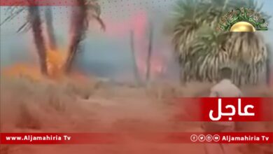 عاجل// اندلاع حريق هائل في غابات النخيل بحي الجزيرة شرق منطقة تازربو