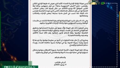 دانت هيئة الرقابة الإدارية الاعتداء على مقرها في طرابلس، مبينة أن المقر تعرض للهجوم من قبل مجهولين، مما أسفر عن أضرار…