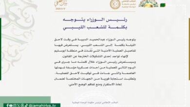 عاجل// الدبيبة يستعرض خلال كلمته ما جرى في اليوم التالي للعملية الأمنية في منطقة أبو سليم من أحداث عسكرية شهدتها العاصمة