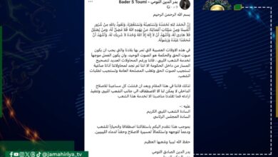 أعرب المجلس الاجتماعي لقبيلة القذاذفة عن قلقه البالغ إزاء تدهور الأوضاع الأمنية وما وصفه بـ”حالة اللادولة” التي تعيشها البلاد.…