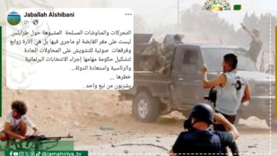دان عضو مجلس النواب، جاب الله الشيباني، التحركات المسلحة المشبوهة حول طرابلس. وقال الشيباني، في منشور على صفحته الشخصية بموقع…