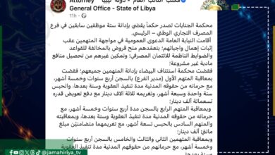 قضت محكمة الجنايات بإدانة ستة موظفين سابقين في فرع المصرف التجاري الوطني – الرئيسي. وأقامت النيابة العامة الدعوى العمومية…