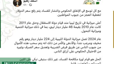 طالب رئيس الاتحاد الوطني للأحزاب الليبية أسعد زهيو، بقيام ثورة لمكافحة الفساد. وقال زهيو، في منشور على صفحته بموقع التواصل…