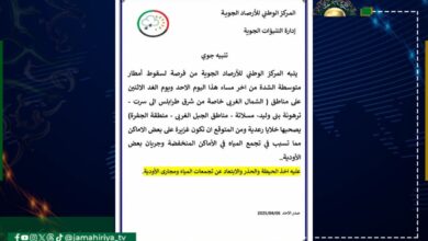 الأرصاد تحذر: أمطار متوسطة إلى غزيرة على بعض الأماكن من مساء اليوم الأحد على مناطق الشمال الغربي من طرابلس إلى سرت والجفرة.