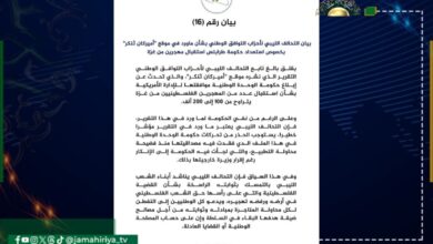 حذر التحالف الليبي لأحزاب التوافق، من تحركات حكومة التطبيع بعد التقرير الذي نشره موقع “أمريكان ثنكر”، والذي تحدث عن إبلاغ…