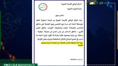 حذر المركز الوطني للأرصاد الجوية من احتمالية هطول أمطار متوسطة إلى شديدة الغزارة مساء يومي الخميس والجمعة. ودعا المركز،…