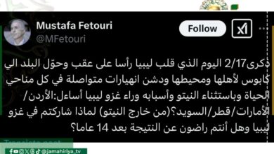 في ذكرى 17 فبراير.. الفيتوري: اليوم الذي قلب ليبيا رأسا على عقب وحوّل البلد إلى كابوس