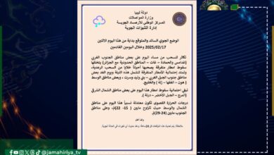 توقع مركز الأرصاد الجوية تكاثر السحب مساء اليوم الإثنين على بعض مناطق الجنوب الغربي (غدامس والحمادة – غات – المناطق…