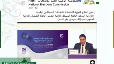 عاجل | مفوضية الانتخابات تعتمد النتائج الأولية الملحقة بالمجالس البلدية المجموعة الثانية لبلديات الزاوية المركز والزاوية الوسط والزاوية الغرب والزاوية…