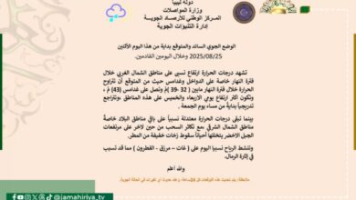 ارتفاع نسبي في درجات الحرارة على مناطق الشمال الغربي توقع مركز الأرصاد الجوية، أن تشهد درجات الحرارة ارتفاع نسبى…